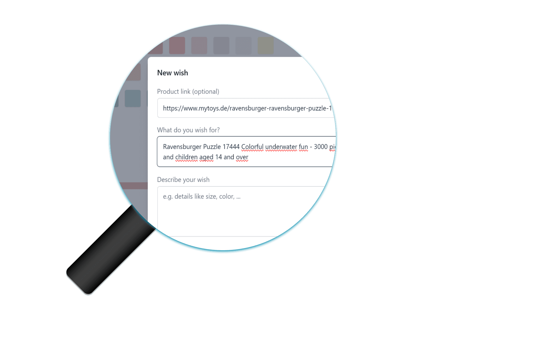 Simply click 'Create Wishlist', add your wishes and share the link with your family. Everything is ready in less than a minute.